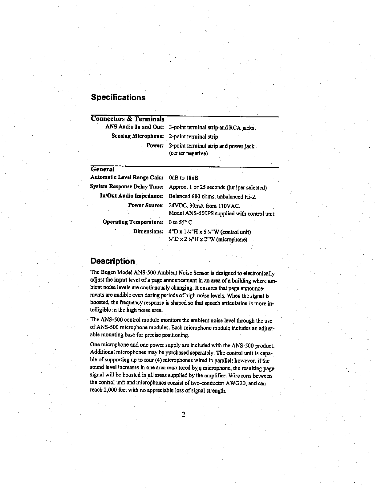 Bogen ANS-500 Manual do Utilizador Página 2